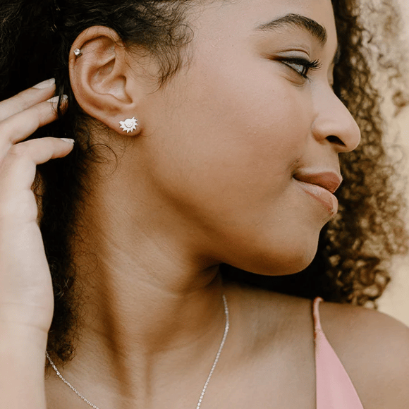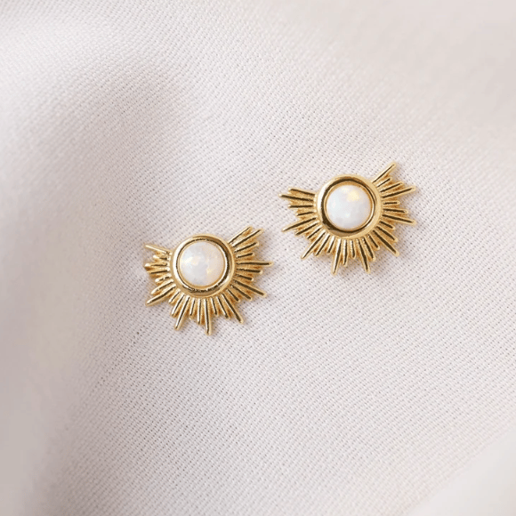Stud Earrings: Gold and Opal